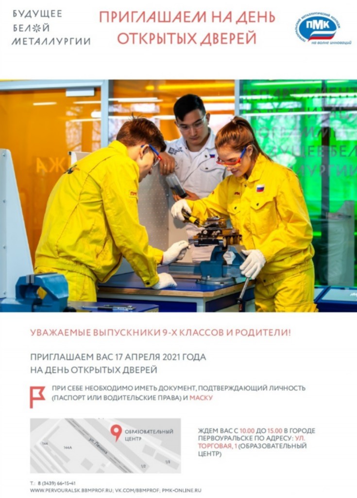 Первоуральский металлургический колледж приглашает абитуриентов и родителей (законных представителей) 18.03.2021 в 18.00 на «День открытых дверей», который пройдет в формате Online-мероприятия на платформе Microsoft Teams.